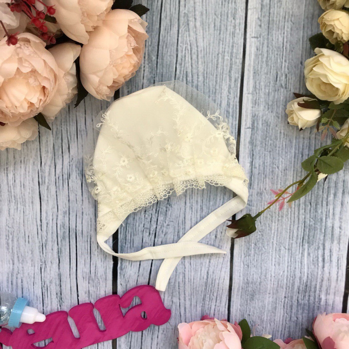 185. Чепчик с кружевом, хлопок 100 % интерлок