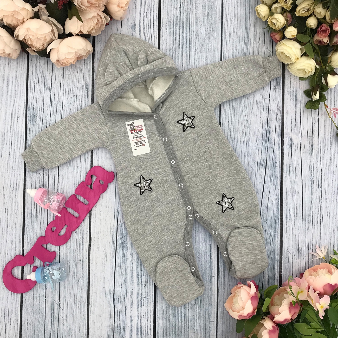 Теги: Купить оптом ясельный комбинезон из начеса. 219-С. Комбинезон ясельный, хлопок 65%, 35% ПЭ, футер с начёсом 62.68,74 цена,отзывы официальный сайт "Стеша Омск"