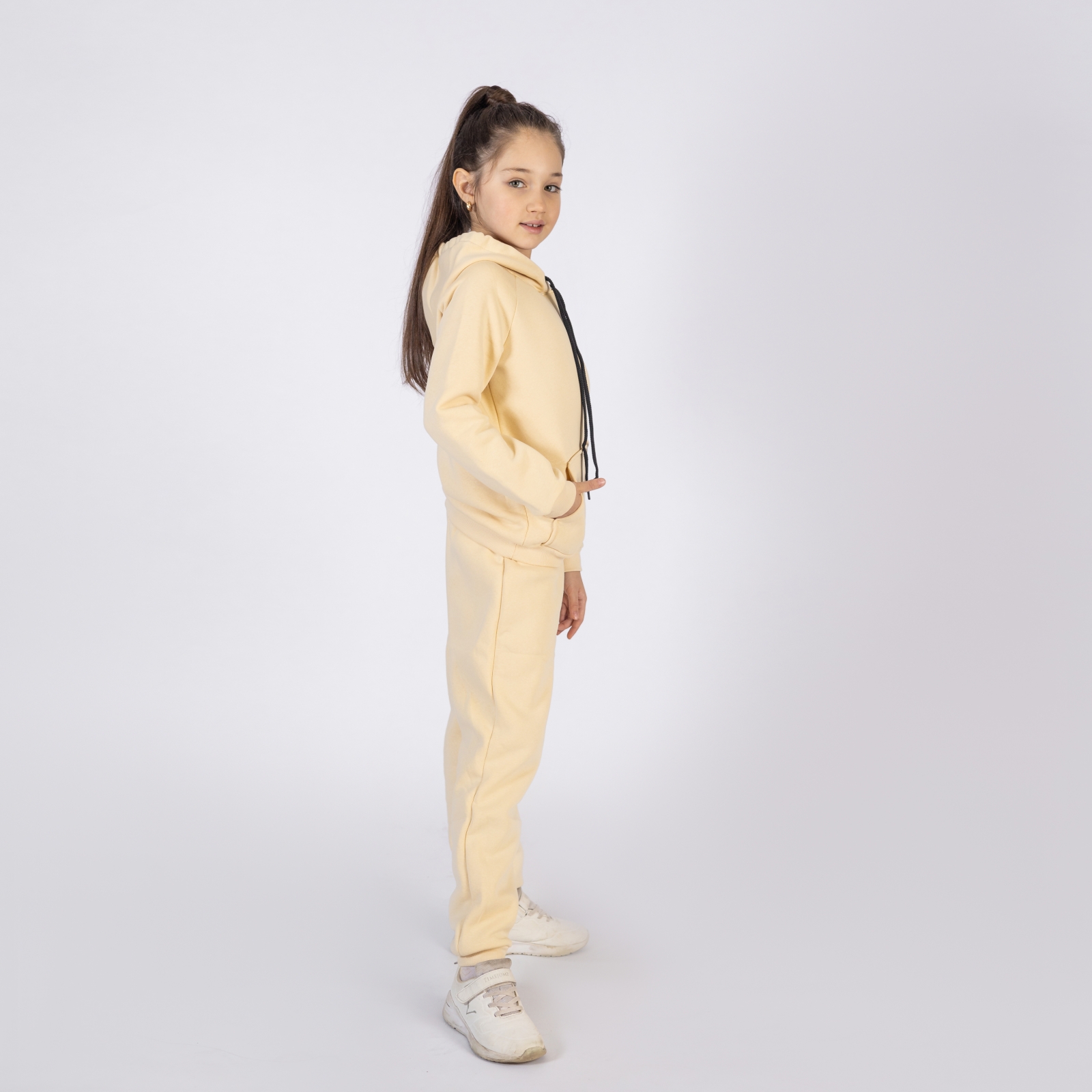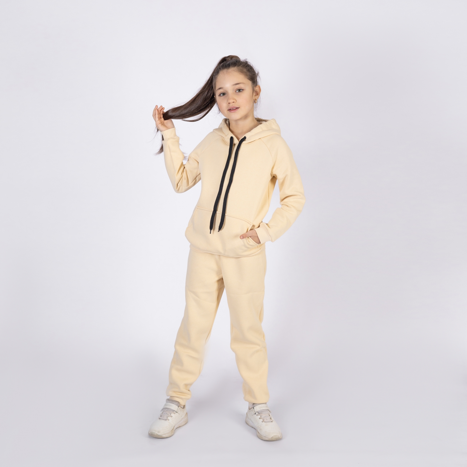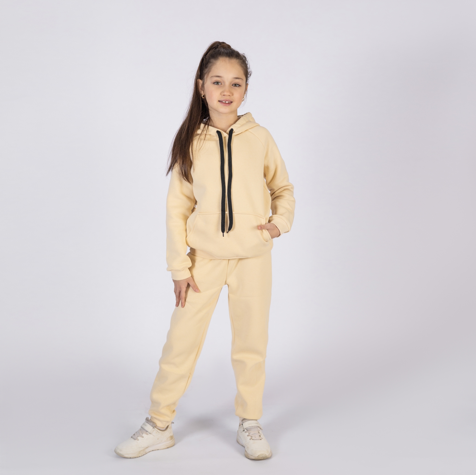 296-СЛ. Свитшот с капюшоном + Штаны, хлопок 65%, 35% ПЭ, 3-х нитка (начес) сливочный 80,86,92