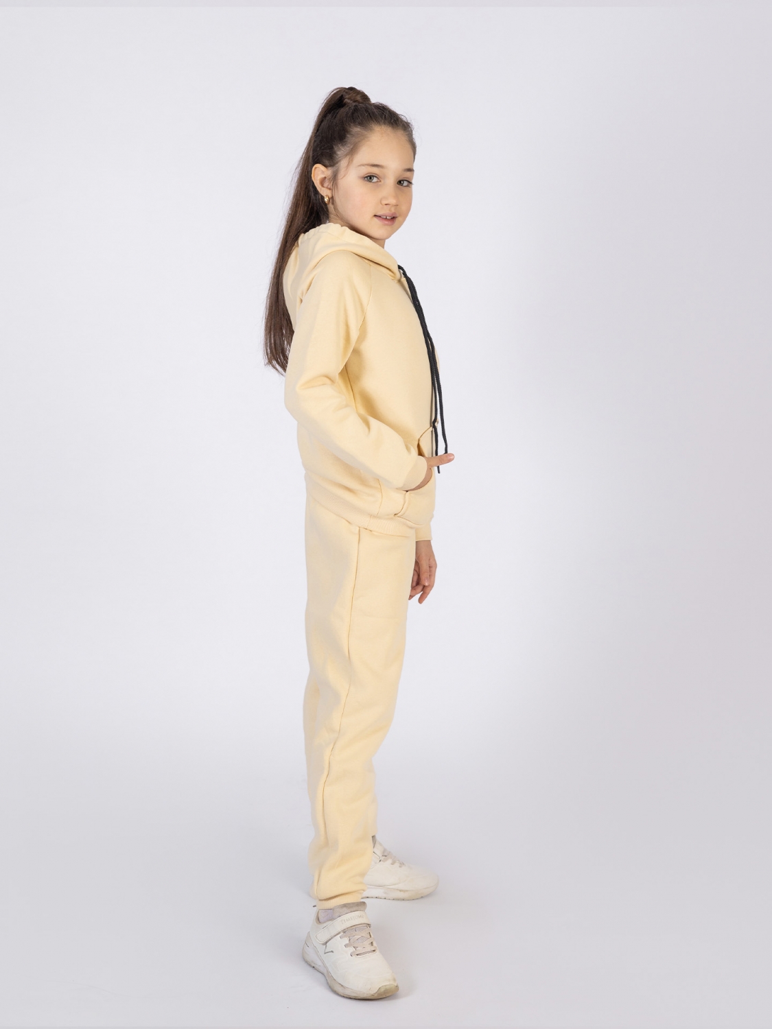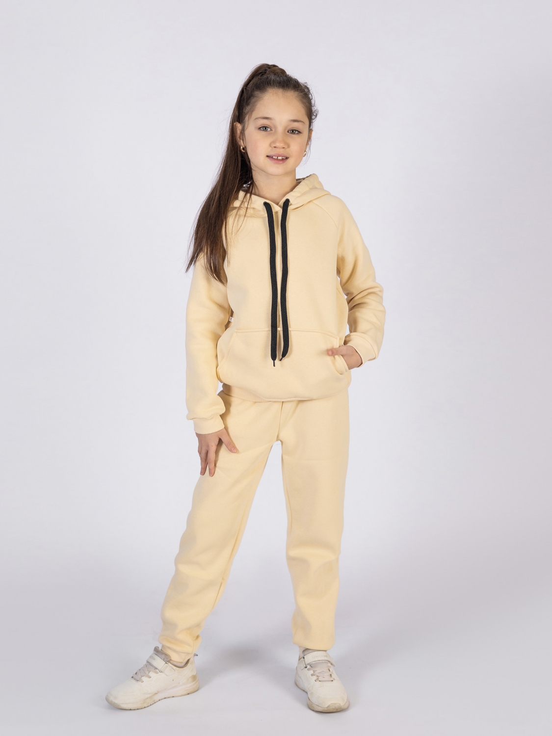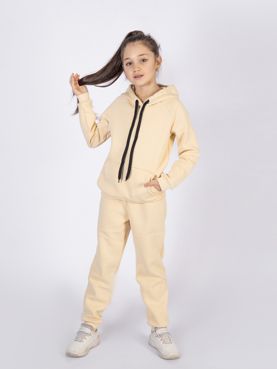 Купить оптом 296-СЛ. Свитшот с капюшоном + Штаны, хлопок 65%, 35% ПЭ, 3-х нитка (начес) сливочный 98,104,110,116 в Омске