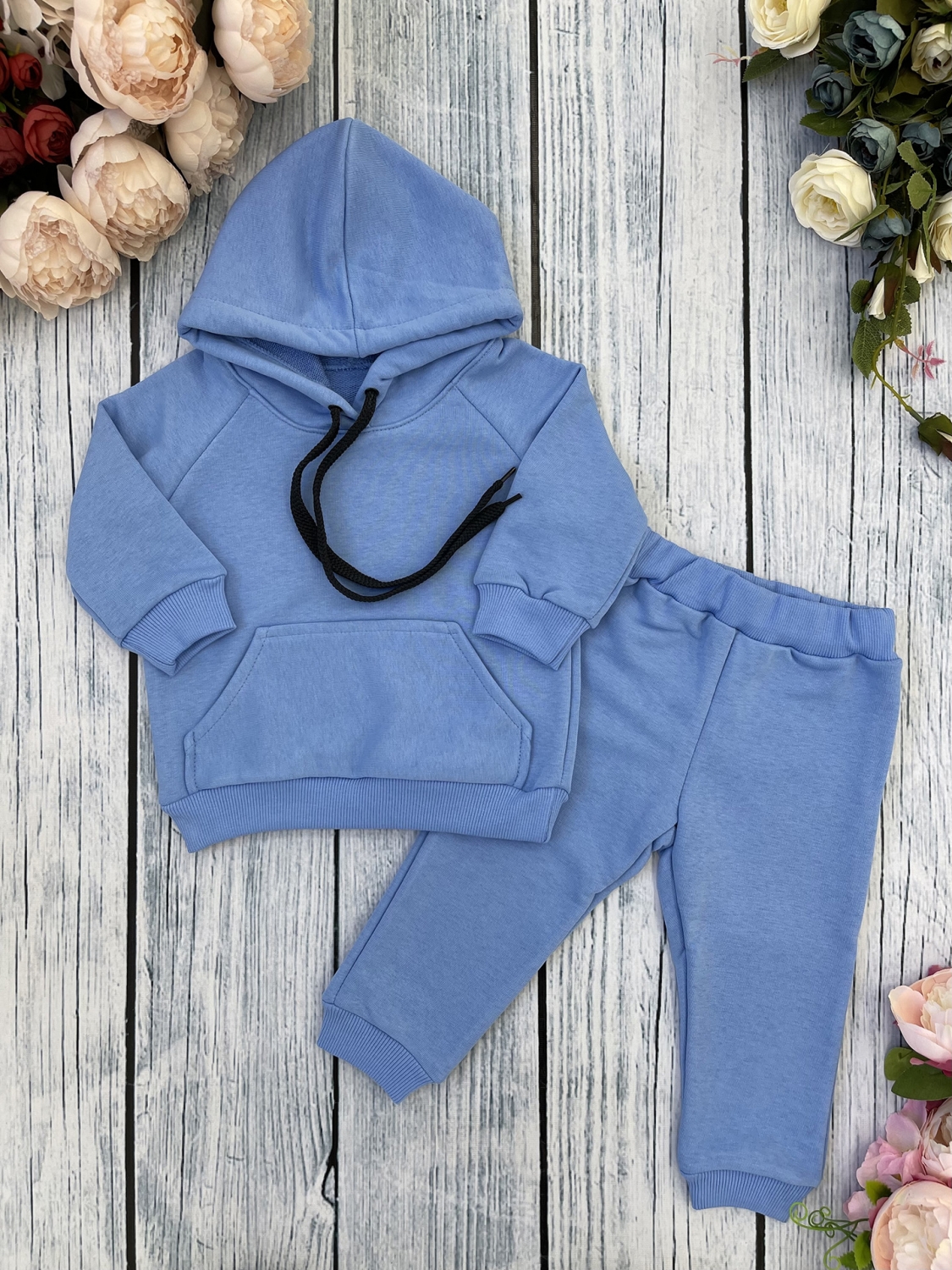 Свитшот + Штаны для девочки и мальчика, выполнен из ткани футер 3-х нитка петля (без начеса) с капюшоном