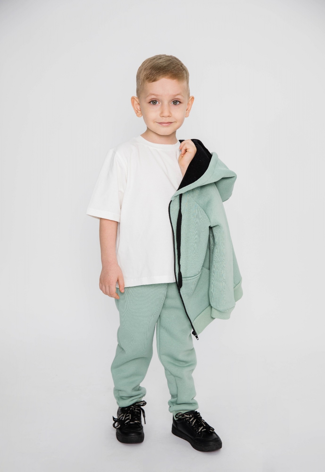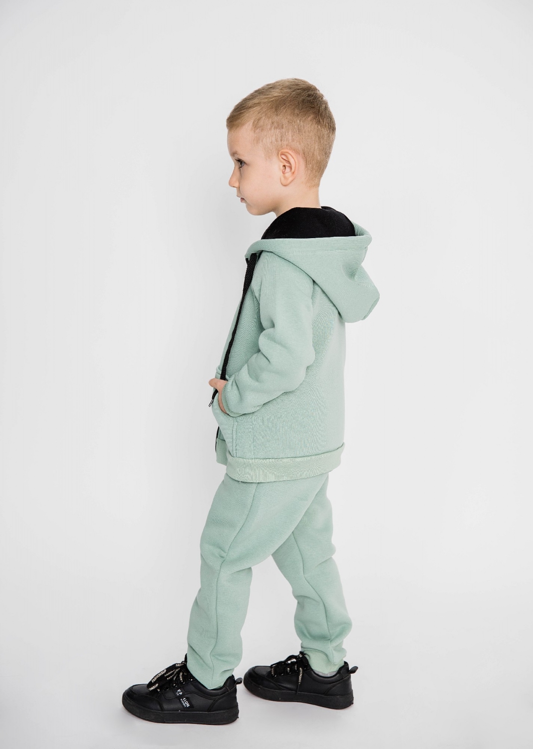 319-ОЛ. Костюм детский на молнии, олива, хлопок 65%, 35% ПЭ, 3-х нитка (начес) 80,86,92