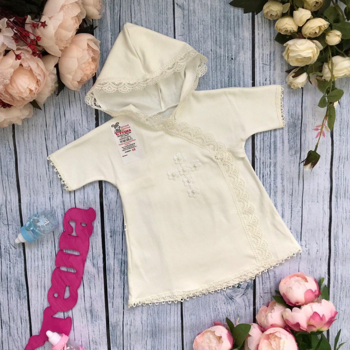Купить оптом 170. Крестильная рубашка с чепчиком (золото), хлопок 100 % интерлок 62,68,74,80 в Омске